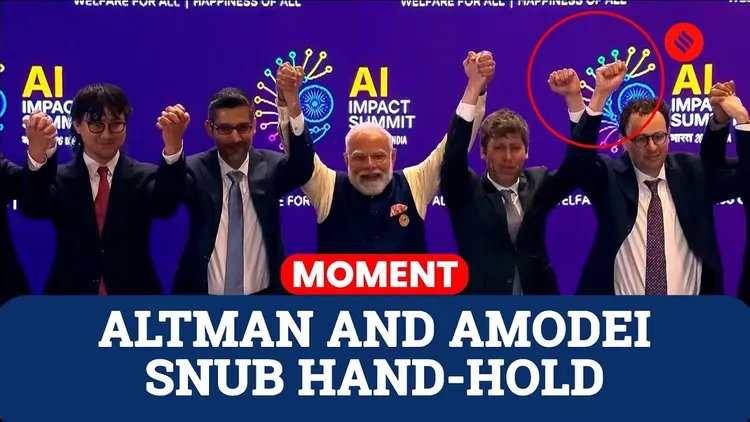 他平等鄙视和防范任何一位同班的竞争者(OpenAI、xAI 和 Google 等),甚至拒绝在公开场合表现团结(在印度 AI 峰会上拒绝与 Sam Altman 拉手);同时对隔壁班的绩优同学(DeepSeek 和 Kimi 等)远程投射绵绵不尽的嫉妒与恶意。