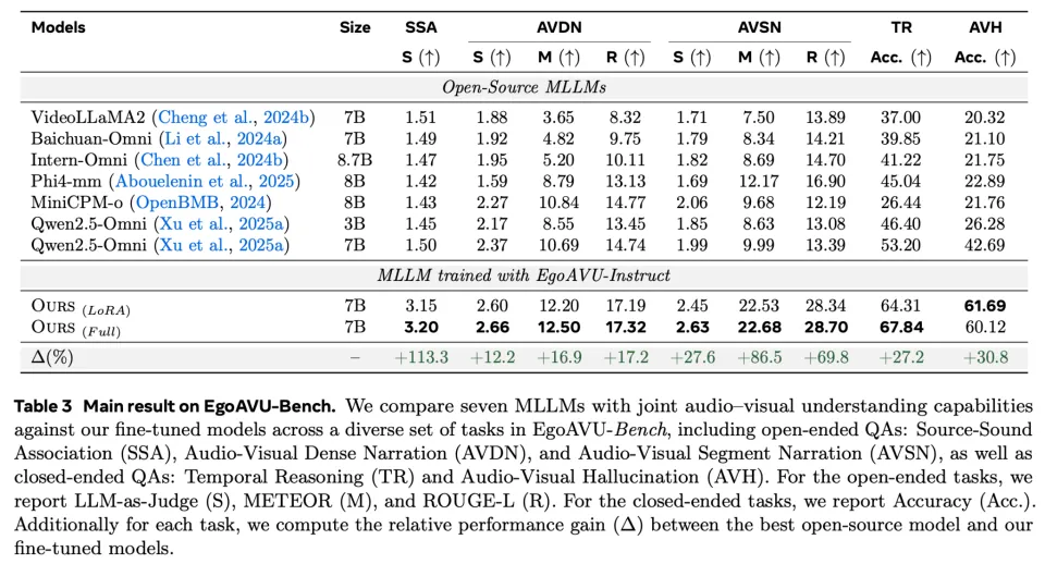 EgoAVU为这些领域提供了关键突破,让多模态大模型第一次真正学会「听懂第一视角世界」。