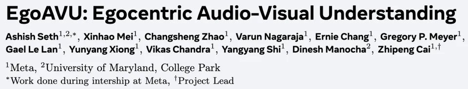 【新智元导读】Meta联合多所高校发布首个可规模化自动生成第一视角音视频理解数据的引擎EgoAVU ,让多模态大模型首次真正「听懂世界」。