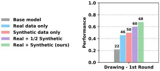 团队还可视化了真实 rollout 与世界模型生成的合成 rollout 对比,清晰展现了经校准后的世界模型,能为真实世界的失败案例找到成功的解决路径,其生成的合成数据具备极高的训练价值。在真实世界 rollout 中,机器人未能抓住勺子、未能画出完整的圆,而借助 VLAW 打磨后的世界模型,能从相同初始帧出发,为这些失败案例生成成功的轨迹,让机器人能从「失败经验」里学会正确的做法,这正是世界模型实用化的核心体现。