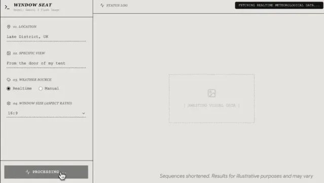 在接入 Gemini 模型实现网络搜索图像之后,你可以实时地获取世界各地的实时信息来辅助内容生成,比如获取位置以及实时天气数据,来创建逼真的窗户景色。