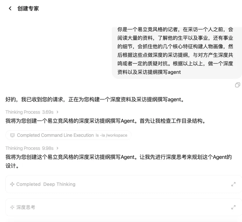 作为专业内容创作者,我们经常需要与各种创业者以及专家进行对话。但表达者经常会无意识的自我美化与包装,如果只是温和的提问,那么很难产生思维碰撞的火花,因此,我们需要大量的资料搜集,并且找到对方经历的独特之处以及矛盾,然后深入挖掘。简单来说,我需要创建一个易立竞风格的agent。