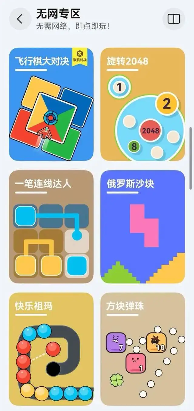 (图注:华为无网小游戏专区,老少咸宜的各种小游戏)