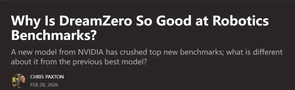 围绕这些问题,近期一篇颇具讨论度的分析文章《Why is DreamZero so good at robotics?》给出了一个更深入的解读:在训练一个通用机器人策略时,你的数据和模型架构需要具备哪些特征?这篇文章的解读,正在对以往的认知提出质疑。