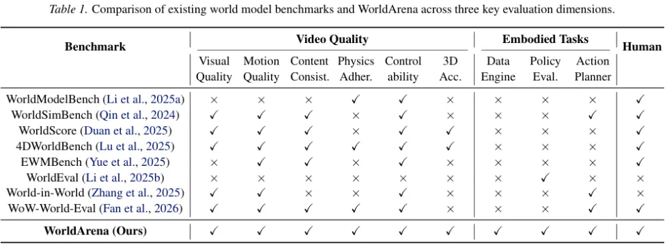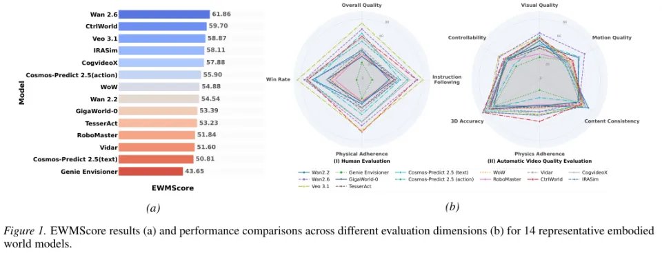 这是首个将感知评估与功能评估深度融合的具身世界模型测试基准。