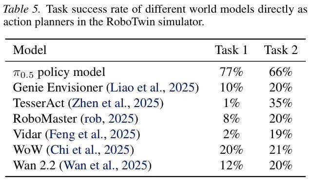 现阶段的具身世界模型虽然掌握了一些预测未来的皮毛,但在支持闭环的、长周期的真实动作执行时,依旧会手忙脚乱,极不稳定。