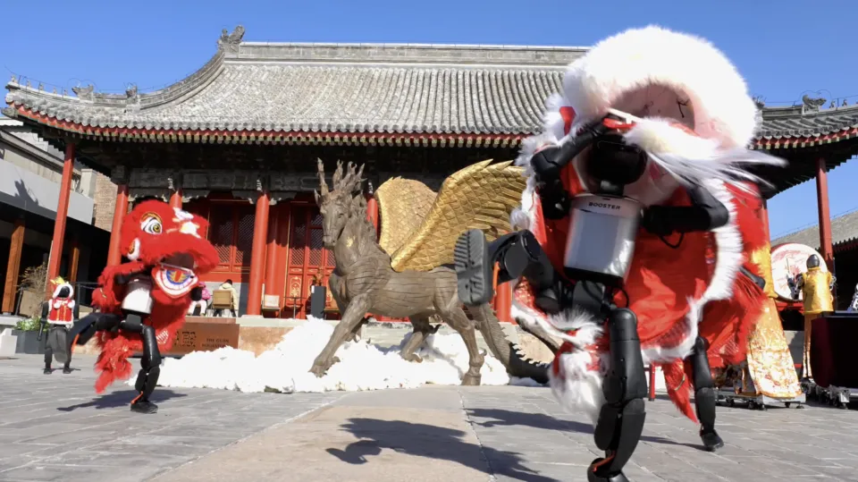 泥地踢球、宗祠祭祖、年集舞狮,加速进化的小机器人们在春节接受最真实的“路考”。