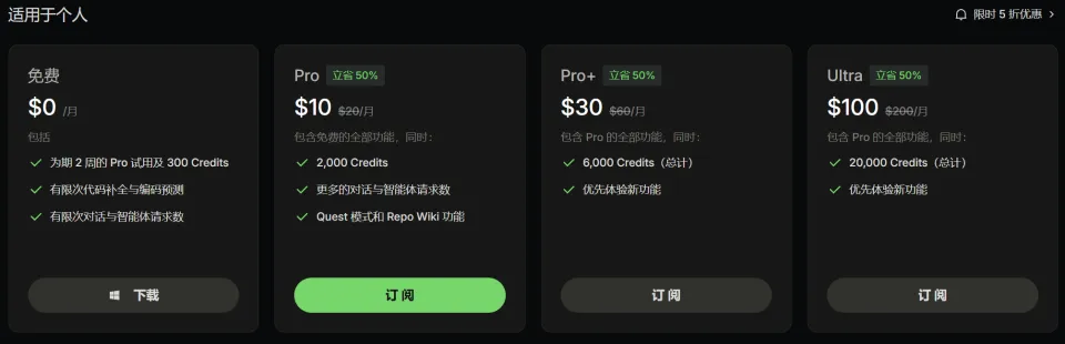 后续Pro/Pro+/Ultra付费版,也将与Qoder本身定价保持一致。