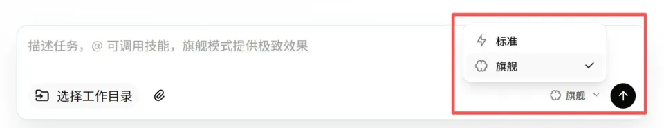 本次更新贴心上线了「模型分级选择器」,即标准和旗舰任意切换。