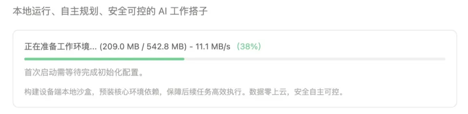 沙箱隔离:任务在独立沙箱中运行,不污染宿主系统;Agent可在其中安装依赖、运行脚本,结果再同步回主界面。