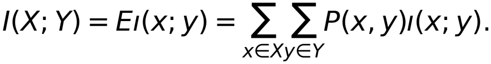其中 P(X) 是 X 的概率分布,I (X;Y) 是互信息(Mutual Information),定义为: