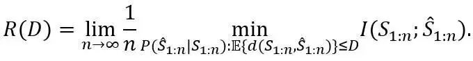 根据 Shannon 的方法论,该定义将有损压缩和解压缩的过程抽象成转移概率 。上述定义就是在满足预期失真度约束的前提下,寻找最优的转移概率,使得恢复后的序列与信源序列之间的统计相关性最小。