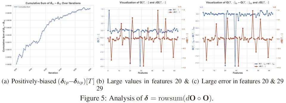 走一条更 “高精度 / 等价但不同数值路径” 的计算方式,训练就能恢复稳定。换言之,训练炸掉的导火索并不是 “整个低精度训练”,而是非常具体的:低精度下