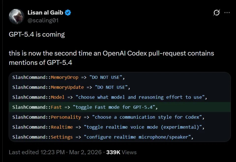 从Codex错误日志、GitHub PR,到员工误发截图,短短几天时间,GPT-5.4已经被「曝光」了至少三次。