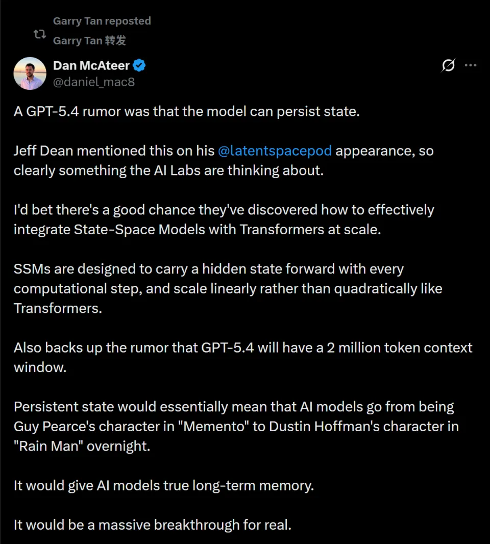 接下来,最疯狂的传闻来了——GPT 5.4,可能拥有永久记忆!