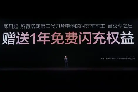 发布会现场,王传福还宣布:所有搭载第二代刀片电池的闪充车车主,均享有重磅“闪充权益”,自交车之日起,在全国闪充站可享受1年的免费闪充权益,让闪充体验更畅快。并且,在闪充免费期结束后,也会同行业保持一致,不会额外收费。