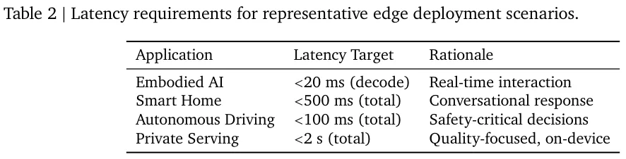 需要实时互动的具身智能必须死守20毫秒的解码底线,而看重对话质量的智能家居则可以放宽到500毫秒的整体响应区间。