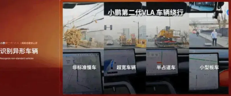 由于端到端模型的泛化能力,小鹏第二代 VLA 已实现实现准确识别各种异形车辆的能力。