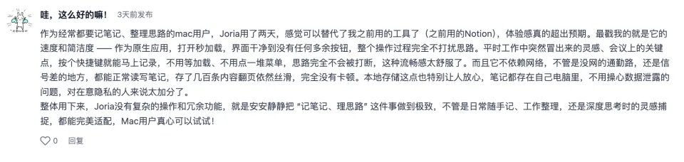 【小 A 推荐】Joria 更强调原生 Mac 体验。它把搜索与笔记结合在一起,让“查完资料”这件事可以直接沉淀为结构化笔记。界面干净,用起来顺滑,不像网页工具那样跳来跳去。适合习惯在桌面端深度工作的用户。