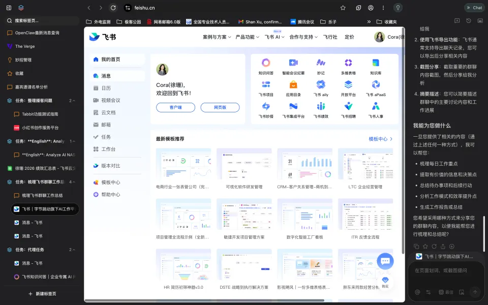 Tabbit 自动登录飞书网页版 |图片来源:极客公园