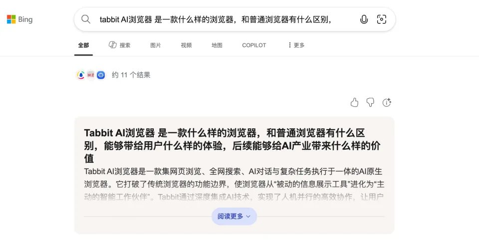 两种搜索模式设计,让用户能够自如切换两种浏览器的使用习惯。本质上,浏览器的核心在于对信息的权重以及对搜索结果调优的方式没有变,但过去是将所有信息呈现给用户,现在是将优质信息呈现给 AI,将结果呈现给用户。