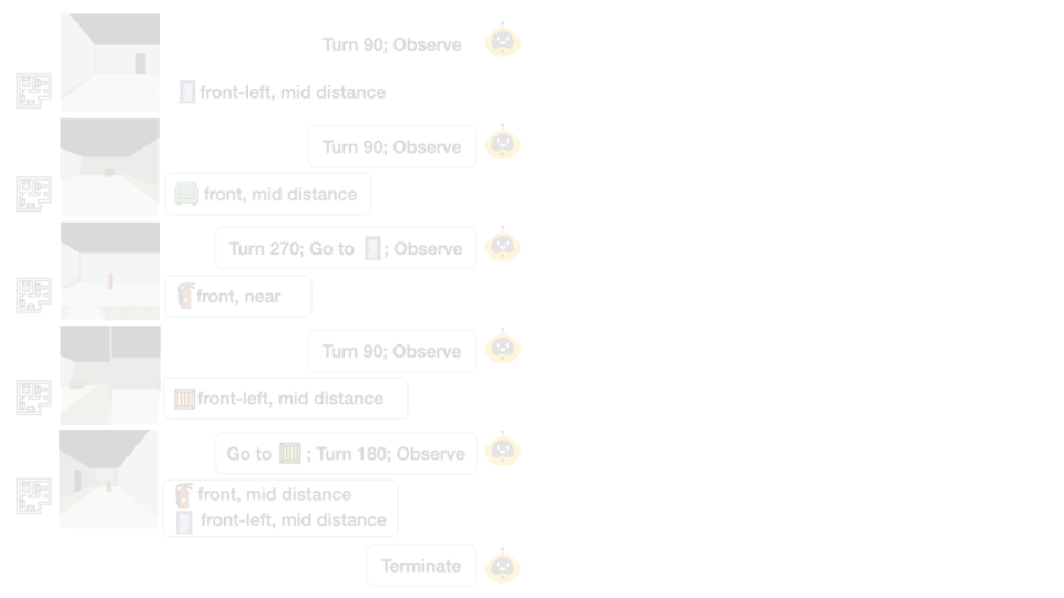 模型只被赋予了几项最基础的本能动作:“移动”、“多角度旋转” 和 “就地观察”。它必须像一个真正的勘探者一样,在有限的试错成本下,自主规划探测路径,并判断何时已经获取了足够的信息来终止探索。
