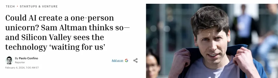 早在2024年,OpenAI的CEO奥特曼就曾公开预言:「一人独角兽即将到来」。