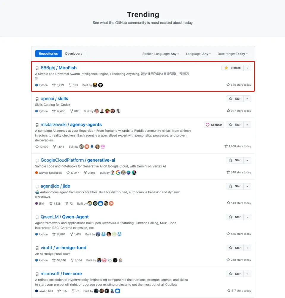 一觉醒来,国产开源AI项目MiroFish登顶GitHub趋势榜榜首!