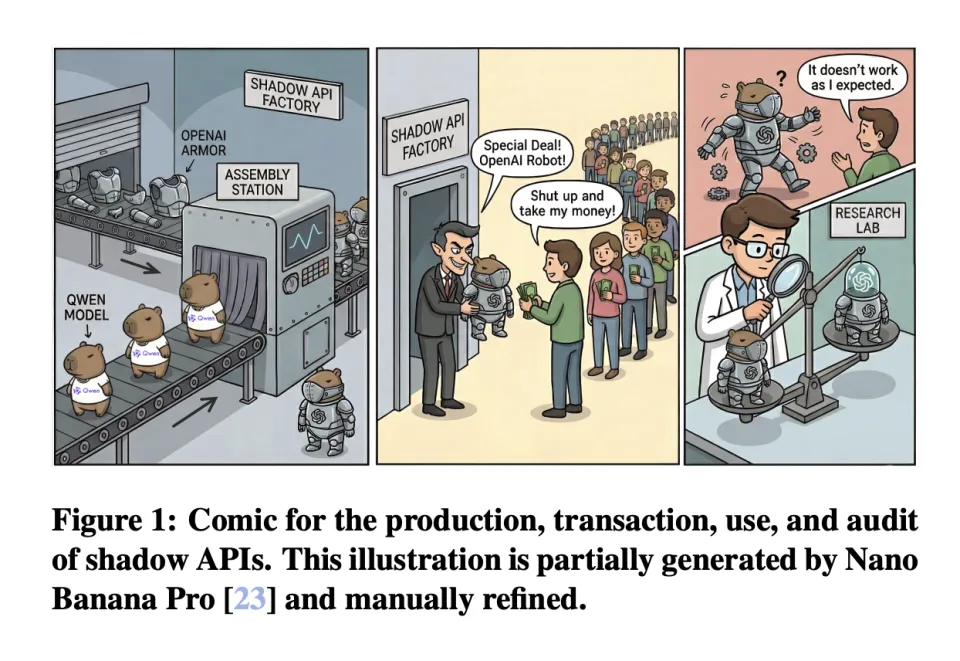 2026年3月,来自德国 CISPA 亥姆霍兹信息安全中心的研究团队发表了一篇长达 22 页的调查报告 。这篇名为《真金白银,虚假模型:影子 API 中的欺骗性声明》的论文无情地戳破了 AI 圈可能最严重的丑闻之一。
