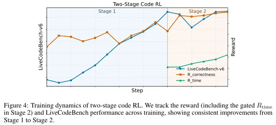 进入代码专项特训后,两阶段的严酷打磨让它掌握了兼顾准确与速度的编程奥义。最后阶段补充的轻量级代理强化训练,将它彻底升华为熟练驾驭各种工具的数字多面手。
