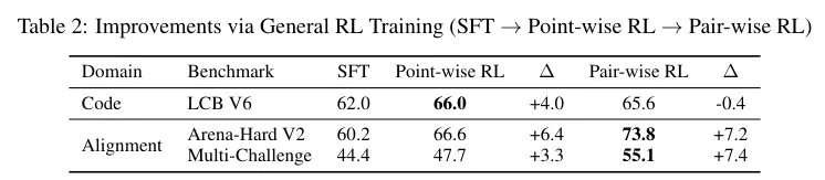 成对强化学习 (Pair-wise RL) 被用来进行更极致的打磨。系统把高分模型和普通模型的回答摆在一起,采用极其严苛的检查单策略来判定输赢。