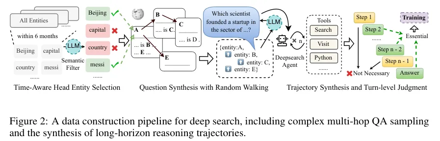 在深度搜索中,执行复杂的数据合成,并在训练过程中纳入回合级别的监督。