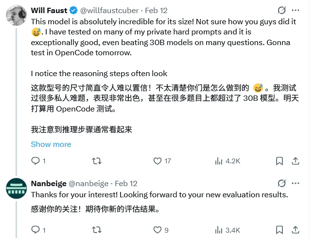 BOSS直聘楠北阁大模型团队,发布了3B轻量端侧小模型Nanbeige4.1-3B。