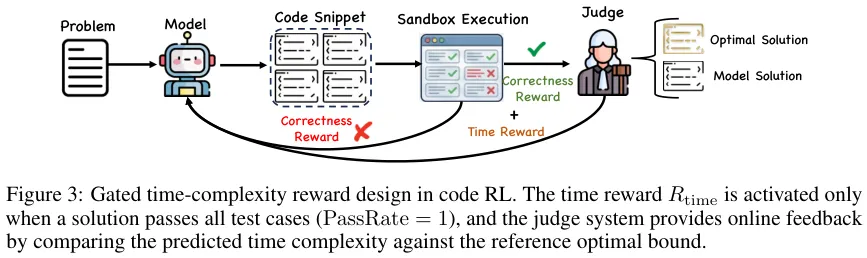 对于代码生成,在强化学习中设计了复杂性感知奖励,优化了正确性和效率。
