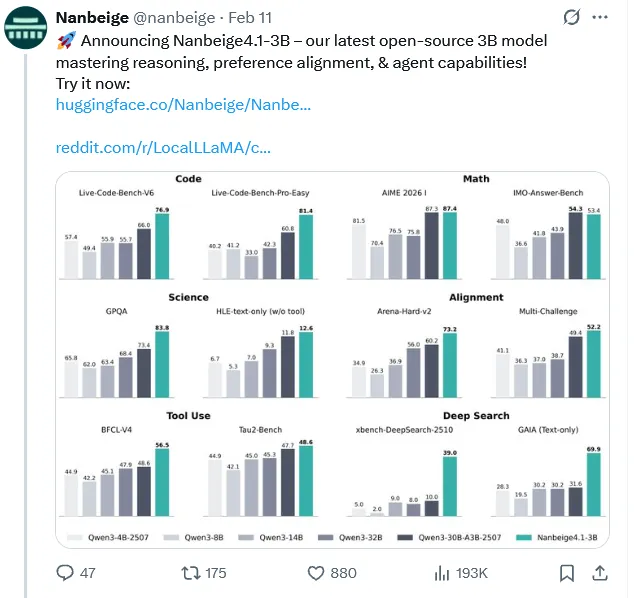 小型模型也可以同时实现广泛的能力和强大的专业化,Nanbeie4-1-3B重新定义了3B参数模型的潜力。