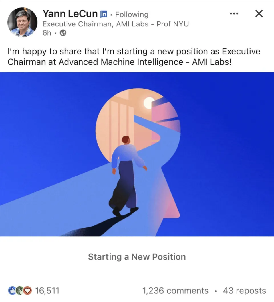 刚刚,图灵奖得主 Yann LeCun 的创业公司 AMI Labs,官宣正式起航了。