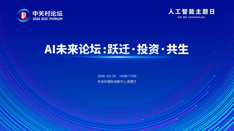「AI未来论坛:跃迁·投资·共生」是2026中关村论坛年会“人工智能主题日”的特色论坛,将于3月29日下午2点在中关村国际创新中心海慧厅举办。目前,论坛报名通道已正式开启。