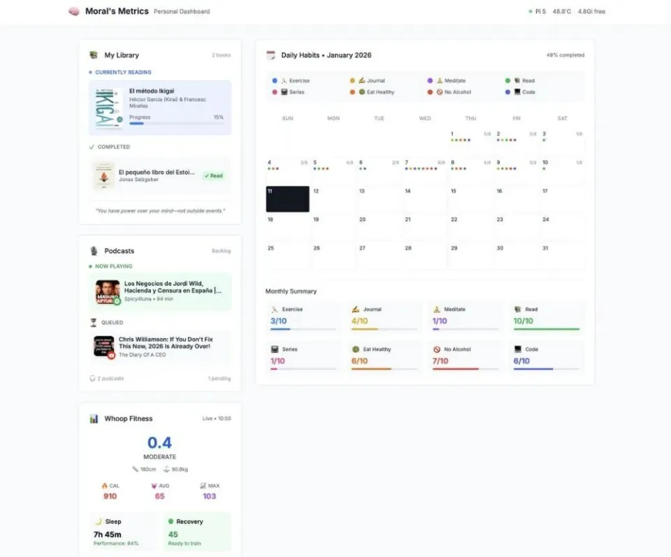 3、树莓派+WHOOP健康仪表盘:连接运动追踪器获取健康数据,还能快速搭建个人网站。