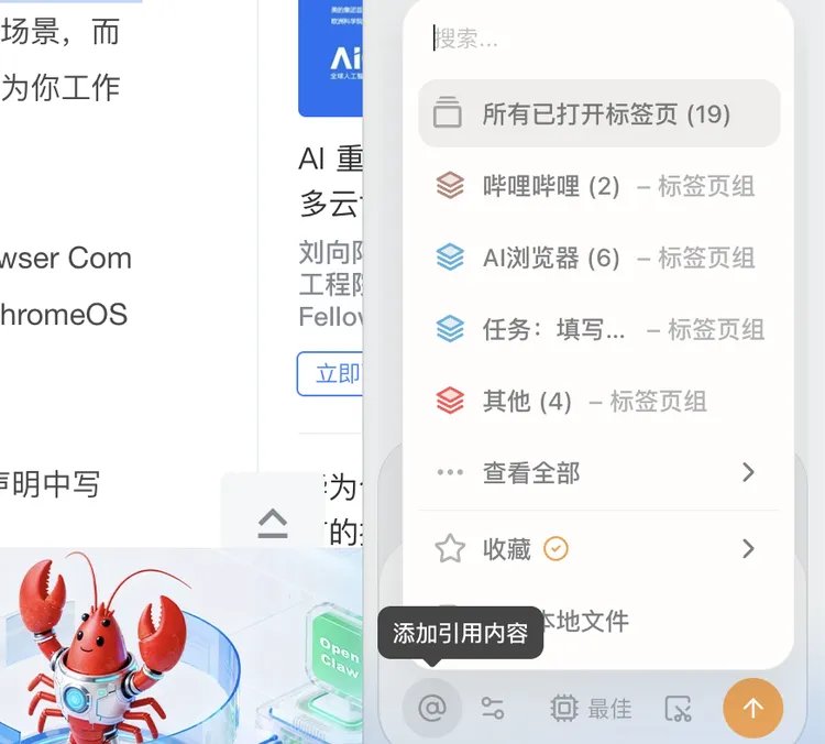 而在AI浏览器中,通过多模型接入,共享同一个上下文解决了这个问题——切换模型不需要新开窗口,你的对话历史和引用内容始终在线。