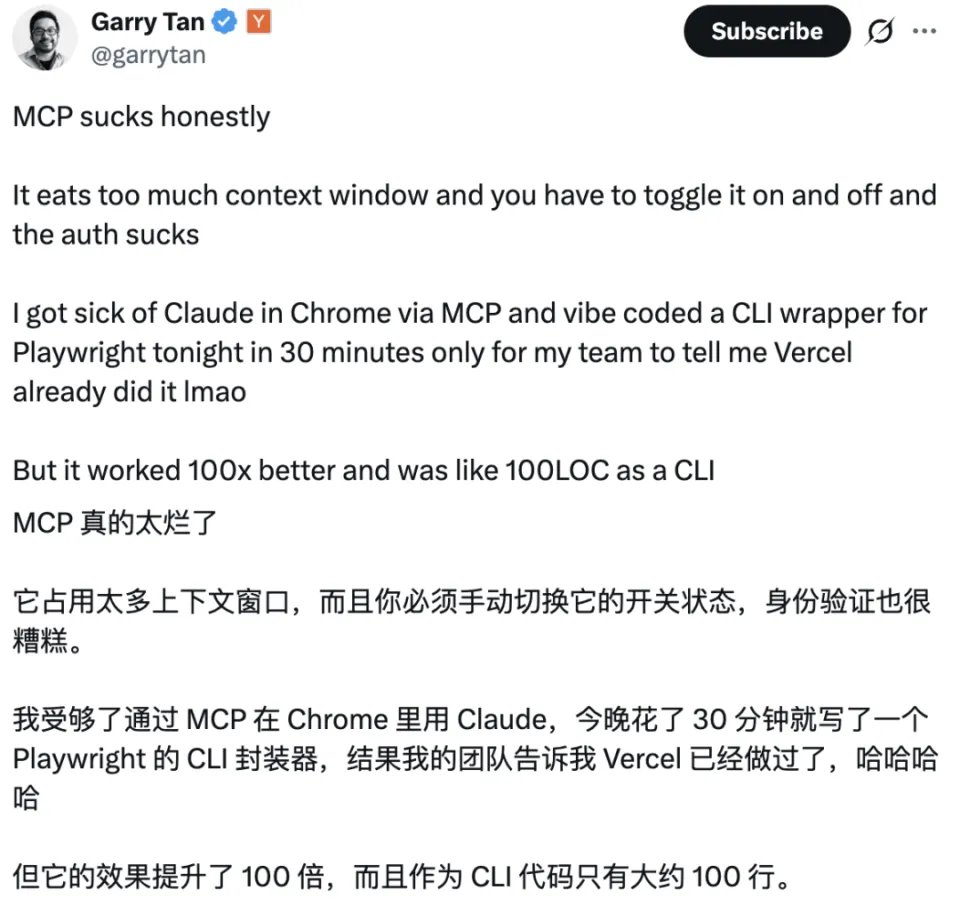 就连 Y Combinator 总裁兼 CEO Garry Tan 也直言不讳:MCP sucks!