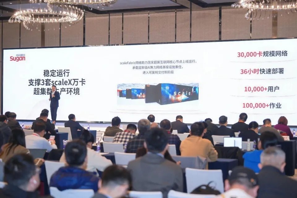 在产业落地层面,scaleFabric瞄准的是最严苛的超大规模智算场景。 科大讯飞AI工程院智算基础设施架构师鲍中帅结合产业实践分享道,当前AI发展正从训练扩展到推理,亟需强大而稳定的智算底座。曙光在郑州国家超算互联网核心节点部署的scaleX超集群,单机柜集成640张GPU加速卡,正是scaleFabric支撑超万卡集群能力的集中体现。鲍中帅认为,对于企业用户而言,scaleFabric与RoCE并非简单替代关系,而是针对不同场景的选项。 在追求极致性能、确定性和超大规模扩展的智算集群中,原生无损的scaleFabric提供了关键基础;而在其他场景,产业界也在持续优化RoCE方案。这种“双轨”推进的策略,体现了国产算力生态的务实与开放。