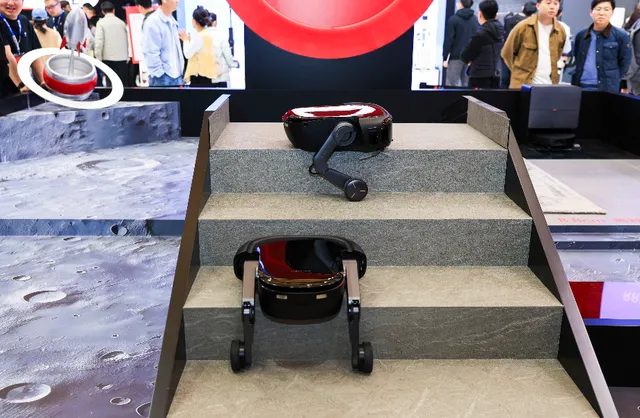 AWE 2026的展馆里,一台扫地机器人正在爬楼梯。