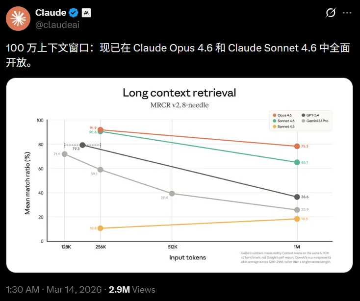 因为它意味着,百万上下文已经从「实验功能」变成默认能力!
