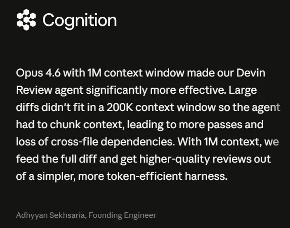 大型代码差异以前根本塞不进20万token的窗口,智能体不得不分块处理,导致跨文件的依赖关系丢失。