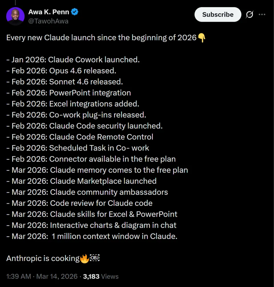 你能相信,自从2026以来,Anthropic的发布是这个节奏吗?