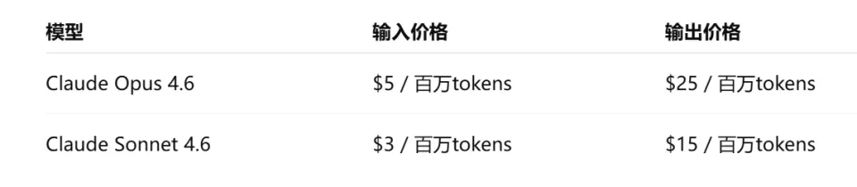 Opus 4.6每百万token输入5美元、输出25美元,Sonnet 4.6输入3美元、输出15美元,全窗口一口价。