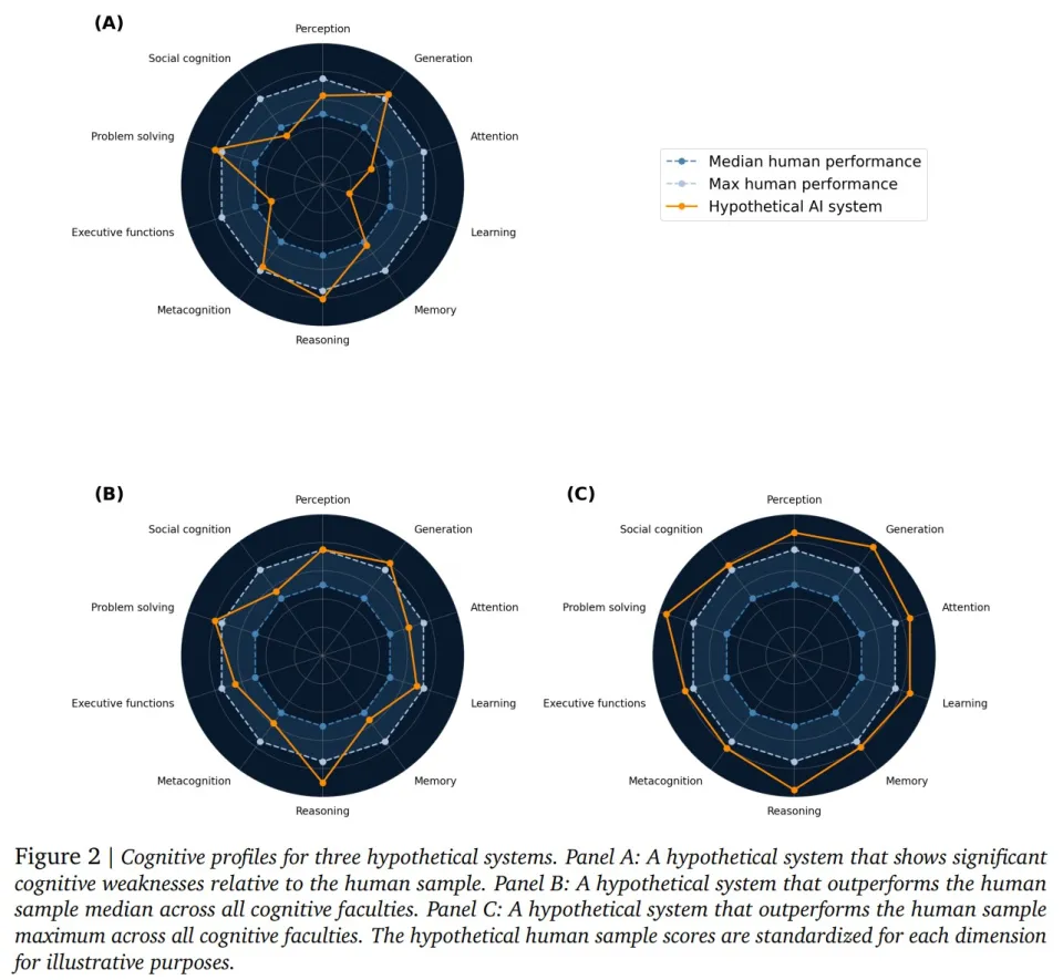 DeepMind坦承,在问题解决和世界知识等领域,现有的benchmark尚可一用;但在元认知、注意力、学习和社会认知这几个深水区,几乎是一片评测荒地。
