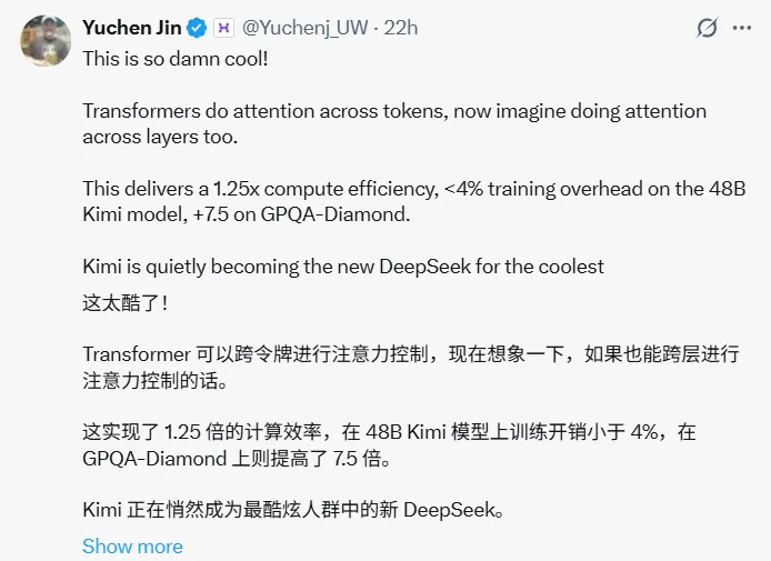 Kimi 的新设计给了 OpenAI 大神 Andrej Karpathy 不少启发,他忍不住深思,“注意力机制”是不是可以运用到更多的地方去?