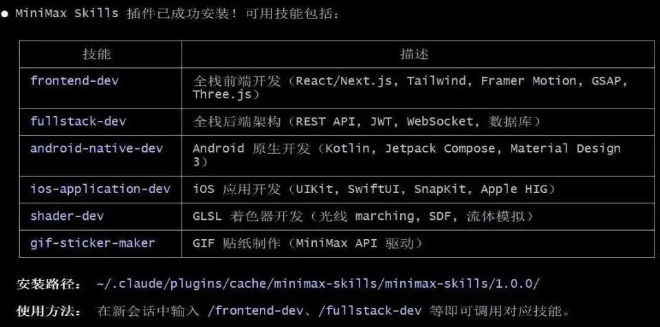 接下来,我们还可以对这个项目进行优化。为此,我们可以用到 MiniMax 精心设计并开源的技能。先来一句命令,让配置了 M2.7 的 Claude Code 自己将这些技能装上:将 MiniMax 在这里开源的技能配置成你的 Skill:https://github.com/MiniMax-AI/skills