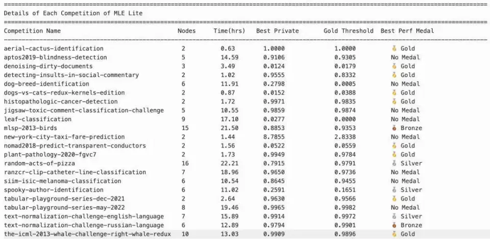 与此同时,得益于模型自身演化出来的自迭代能力,M2.7 的科研表现显著提升。它向以 Kaggle 竞赛为基础构建的 MLE Bench 评测体系发起了挑战,其中在 MLE Lite 的 22 道高难度竞赛题目中, 一举拿下了 9 枚金牌!